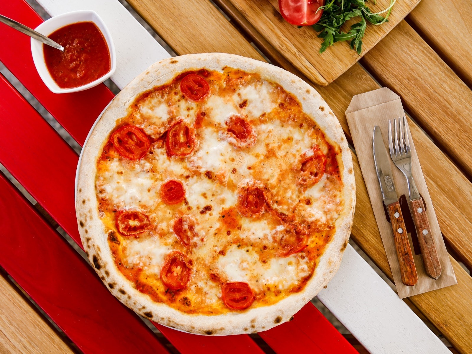 sos de roșii, mozzarella bufala, roșii cherry, busuioc -
